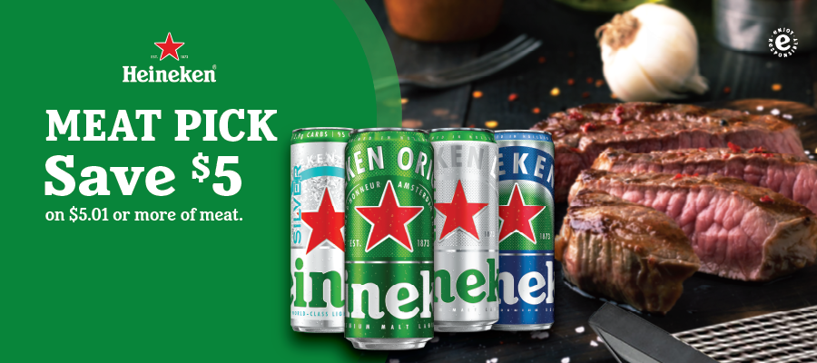 Save $5 on $5.01 or more off Meat or Poke – Heineken Original, Heineken Light, Heineken Silver, Heineken 0.0, - HI only