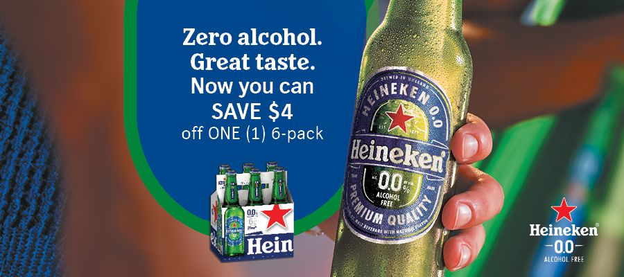 Heineken 0.0 6-pack Save $4 and 12pk Save $9